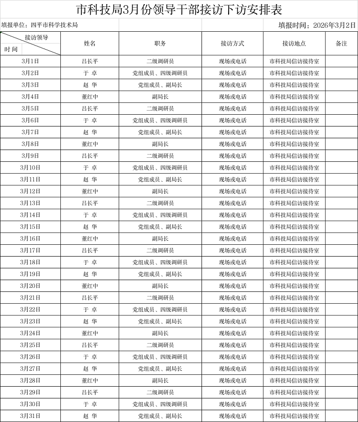 市科技局3月份领导干部接访下访安排表