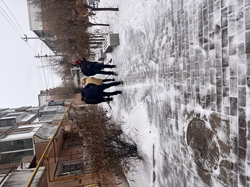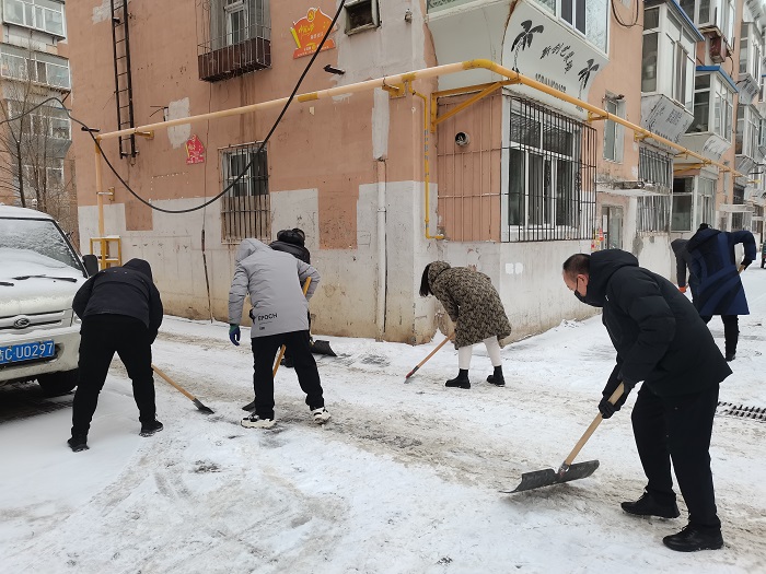 扫雪除冰工作中,党员干部们不畏严寒、干劲十足,大家挥舞着清扫工具,分工明确、清扫各自小组负责的楼前积雪和社区道路,为利群社区居民开辟出一道“平安路”,确保群众方便出行、安全出行、温暖出行。